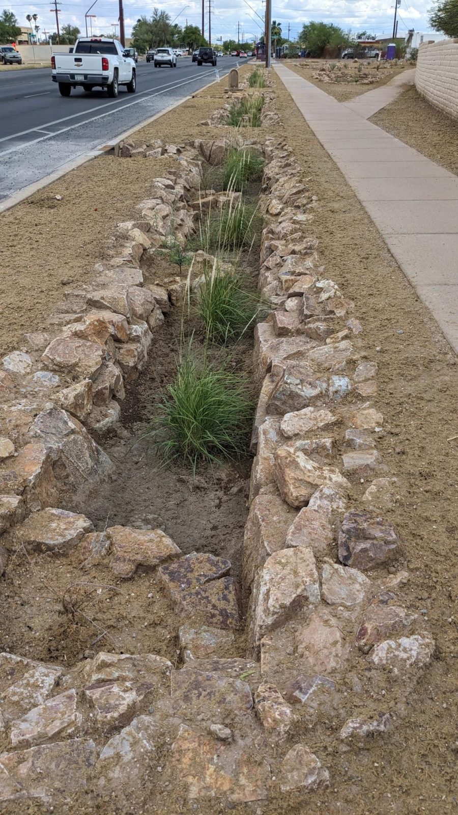 Join Jennifer Patton and Ben Wilder of Wilder Landscape Architects on a tour of a recently constructed streetside stormwater harvesting project. This project, funded by the City of Tucson’s Storm to Shade program, features twenty-four species of container grown native plants including four species of grasses, and a seed mix consisting of an additional thirty-three native species (12 of those grasses). Learn how the City is putting roadway runoff to work on City-owned parcels to grow shade.