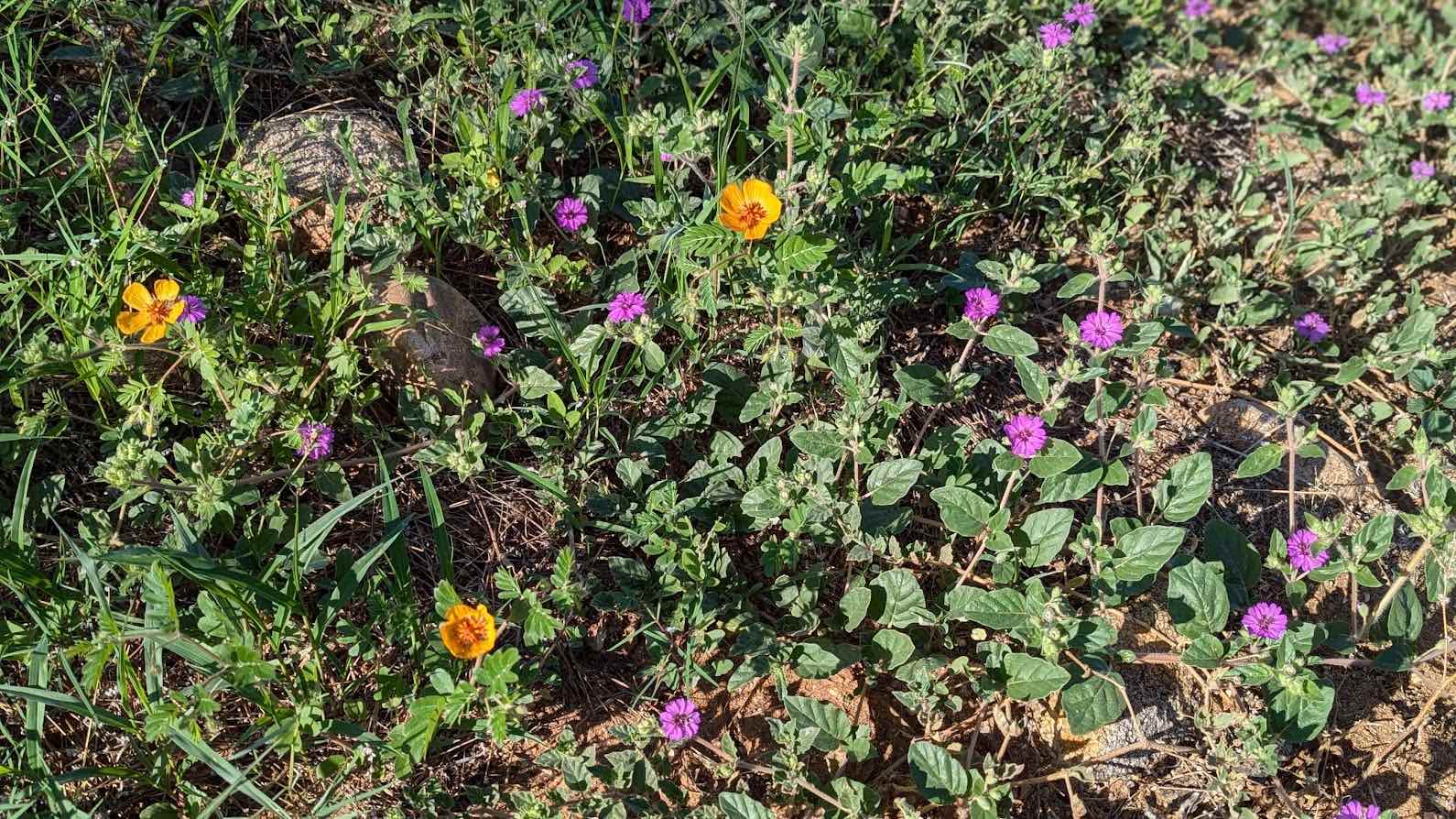 In addition to grasses, we will walk through swathes of blooming Arizona Caltrop.  A highlight of the tour will be Trailing Grama Grass (Bouteloua diversispicula), the newly discovered roadside species common in Sonora that had only been previously found in Arizona in one remote area of Ironwood Forest.