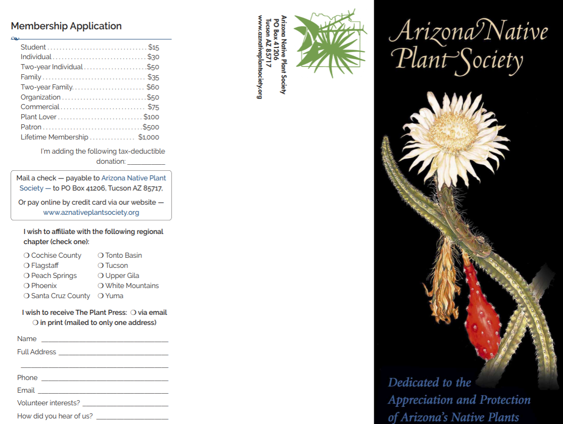 ![]() | Membership Brochure | Provides information on the mission of AZNPS, member activities and benefits, and membership information. |
