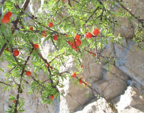 | Description | Found primarily in southern Arizona, this is perhaps the toughest of the wolfberry species. Plants are identifiable by their small leaves and dark bark. White flowers attract pollinators and the red fruits are an excellent wildlife food source. This species prefers well draining soil, and is generally found on slopes and wash edges in habitat. |