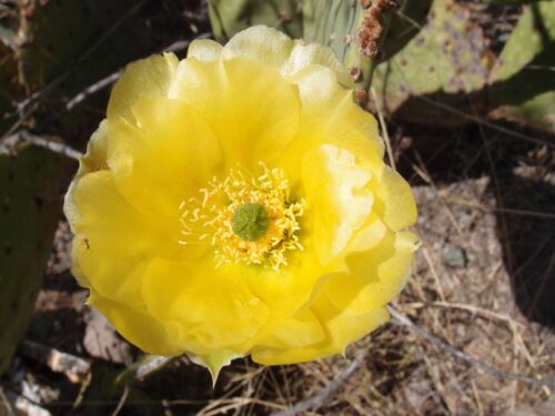 | Description | Engelmann's prickly pear is found throughout much of the state at a variety of elevations. Like most cacti it performs best given good drainage and plenty of sun. This is a bushy prickly pear which is typically wider than it is tall. Pads can be variable but are usually round and fairly thin, though sometimes pads can be elongated. Pads are a yellowish green with aereoles (bumps that house spines) in diagonal rows along the pad surface. A reliable prickly pear at almost any elevation in the state. |