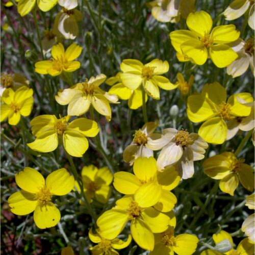 | Description | Paperflower is found in the arid Mojave and Sonoran deserts of western and southern Arizona on rocky foothills and sandy wash edges. This species is a tough and showy native wildflower for desert gardens, with hairy white stems and golden flowers in the springtime. Plant among desert flowers and succulents such as barrel cacti (Ferocactus spp.), globe mallow (Sphaeralcea spp.), and Ocotillo (Fouquieria splendens). |